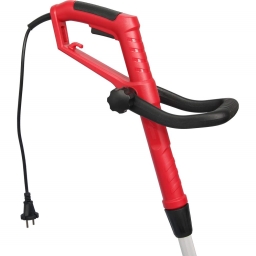 Передняя рукоятка может разворачиваться в любую сторону по желанию пользователя, с целью подобрать наилучшее положение в соответствии с ростом. Основная рабочая рукоятка имеет прорезиненное покрытие, которое обеспечивает прочный захват во время работы и не дает соскальзывать рукам. Для закрепления кабеля на рукоятке есть небольшой крючок. Отчего можно не опасаться, что сетевой шнур запутается в процессе работы., из которого она изготовлена, обладает высокой степенью износоустойчивости и сопротивляемости к коррозии.