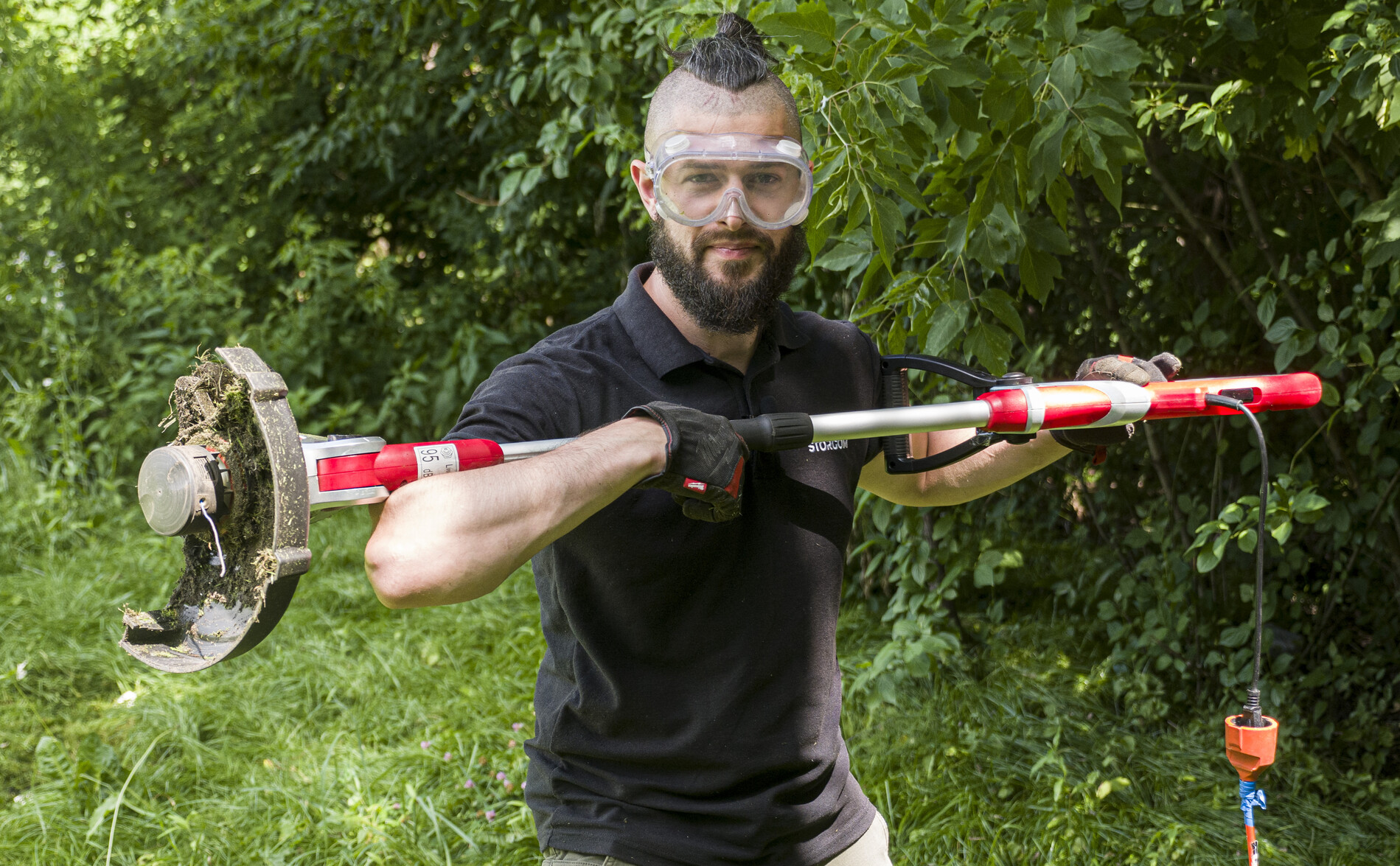 Мощный двигатель (550 Вт) обеспечивает возможность работы на скорости 10000 об. в минуту, что дает возможность справиться даже с густой травой;