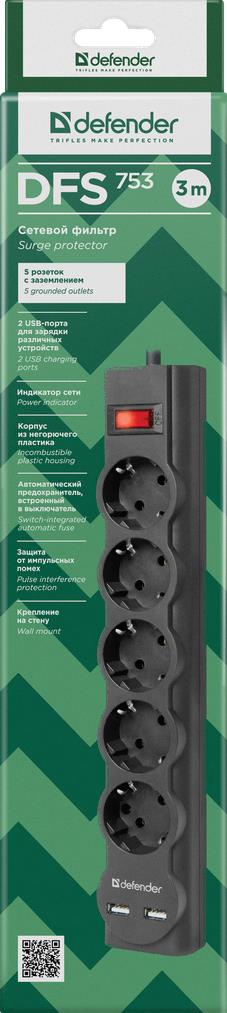 Сетевой фильтр Defender DFS-753 / 99753 (3м, 5 розеток)