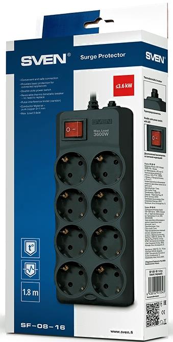Сетевой фильтр Sven SF-08-16 (1.8м, черный)