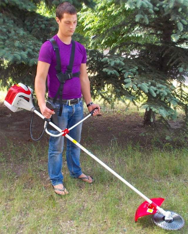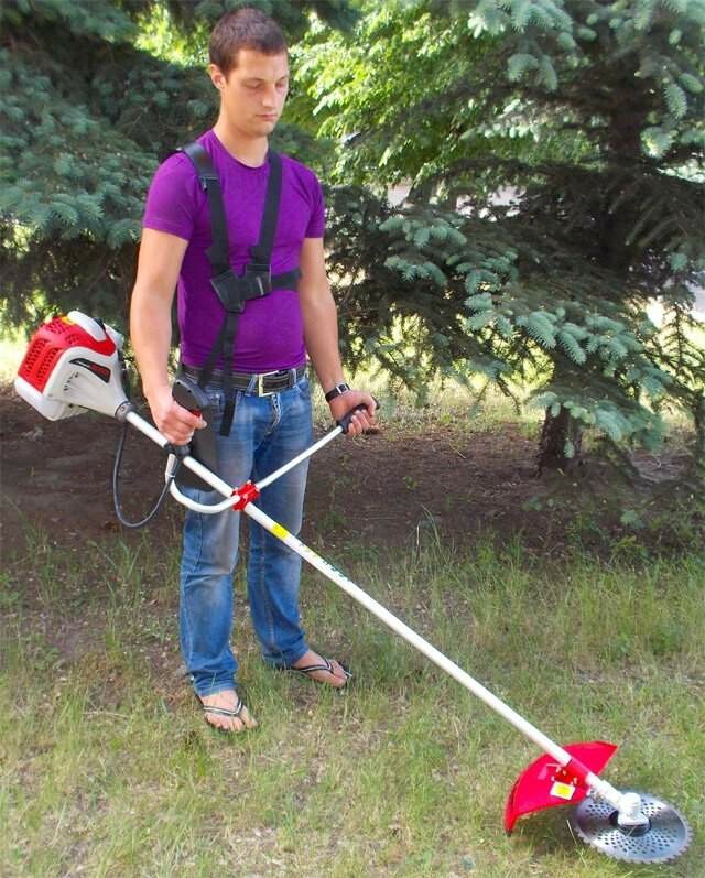 Непосредственно процесс скашивания травы в мотокосе BK4917r проходит с помощью нескольких инструментов. Это неподвижный режущий нож, с очень острым лезвием, который закреплен над редуктором. В комплекте с мотокосой Vitals BK 4917г идет мультизубчатый нержавеющий диск, который способен срезать мелкий кустарник и толстые растения. После работы диска остается проход в диаметре 255 мм.