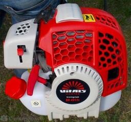Одноцилиндровый двухтактный двигатель передает вращение с мощностью 1,65 кВт или 2,2 л.с. Бензиновый двигатель внутреннего сгорания имеет максимальный крутящий момент 2,12 Нм при 7000 оборотах в минуту. Рабочий объем цилиндра двигателя увеличен до 49,0 куб.см. Максимальная частота оборотов в минуту составляет – 8500. Это говорит о большей продуктивности бензинового инструмента.