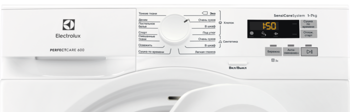 • Программы джинсы,хлопок эко,хлопок,спортивные вещи,очень сухое,освежающий цикл,сушка под утюг,сушка в шкаф,деликатная сушка,легкая глажка (без складок)