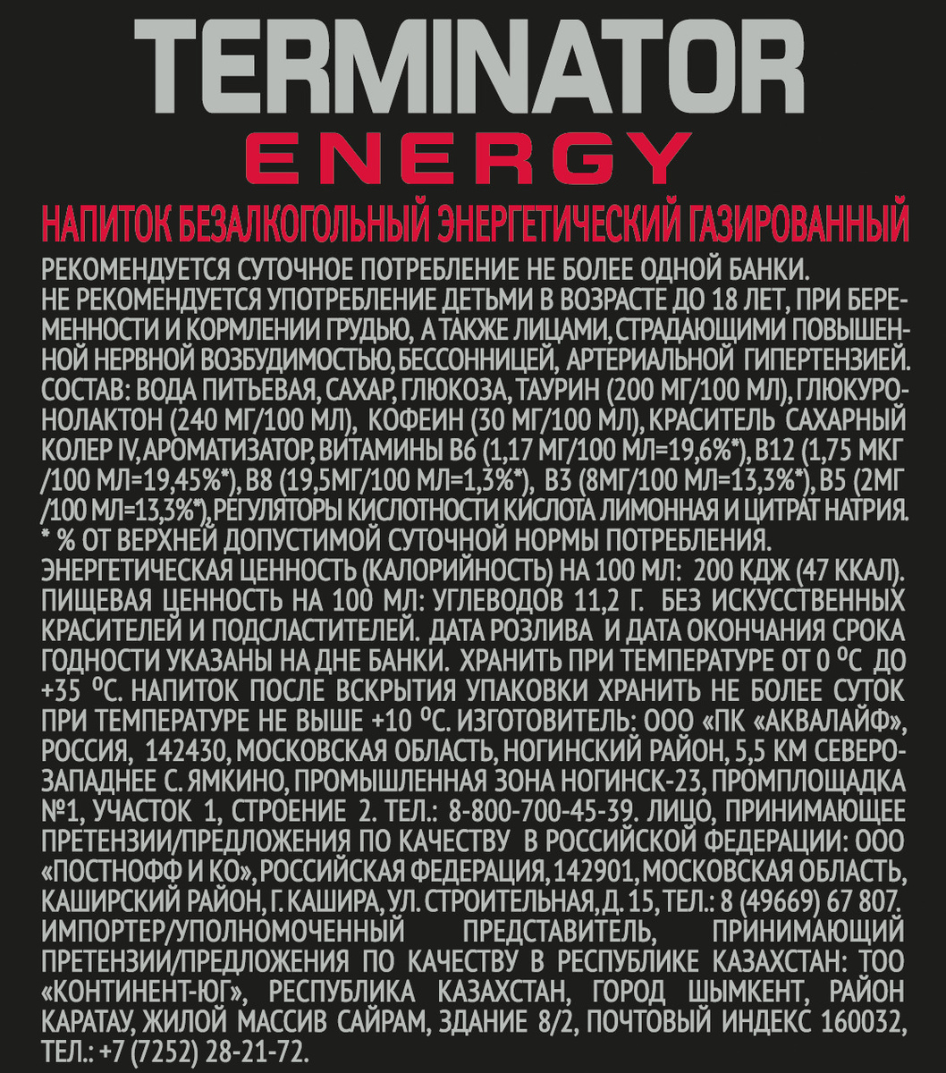 - Тип Энергетический напиток