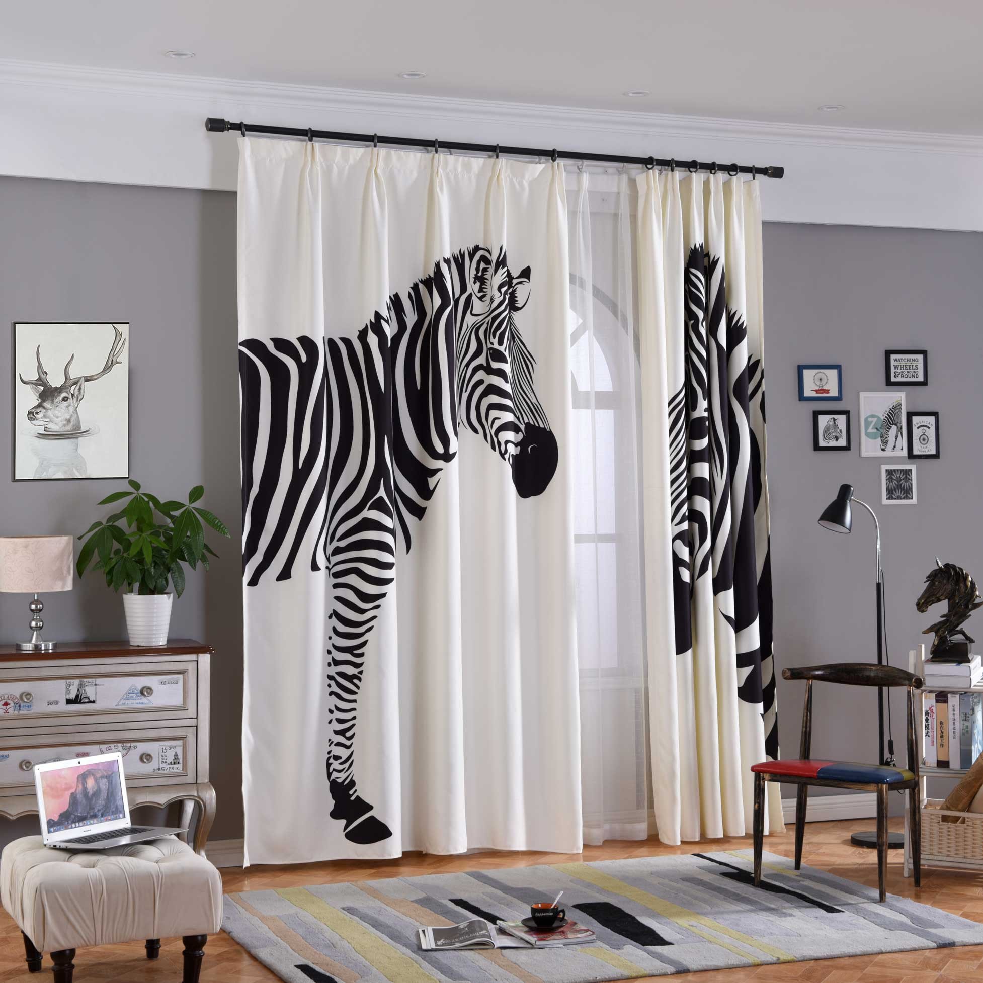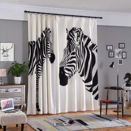 Фотоштора BERNI Готовые шторы в гостиную с рисунком Зебра 185 х 265 2 шт. Бело-кремовый с черным (45548)