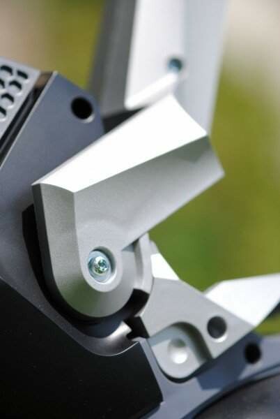 Благодаря тому, что триммер имеет телескопическую штангу, пользователь имеет возможность настроить агрегат непосредственно под свой рост. Телескопическую штангу можно раздвинуть и зафиксировать в пяти различных позициях. Чтобы инструмент не «уползал» во время работы, есть специальный металлический фиксатор. Максимальная высота штанги может достигать 80 мм. В сложенном состоянии триммер удобен для переноски, перевозки и хранения.