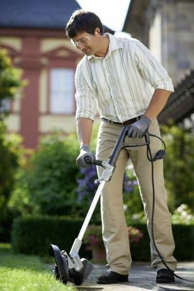 Производитель снабдил устройство специальной поворотной рукояткой, которая легко разворачивается на 180 градусов при надобности. Поворотная рукоятка позволяет выполнять стандартную стрижку газона в вертикальном положении, а также тримминг краев газона и труднодоступных мест в горизонтальном ( наклонном) положении. Таким образом, наличие в электрическом триммере рукоятки с поворотом дает возможность быстро и легко произвести аккуратную стрижку на самых сложных участках с растительностью.