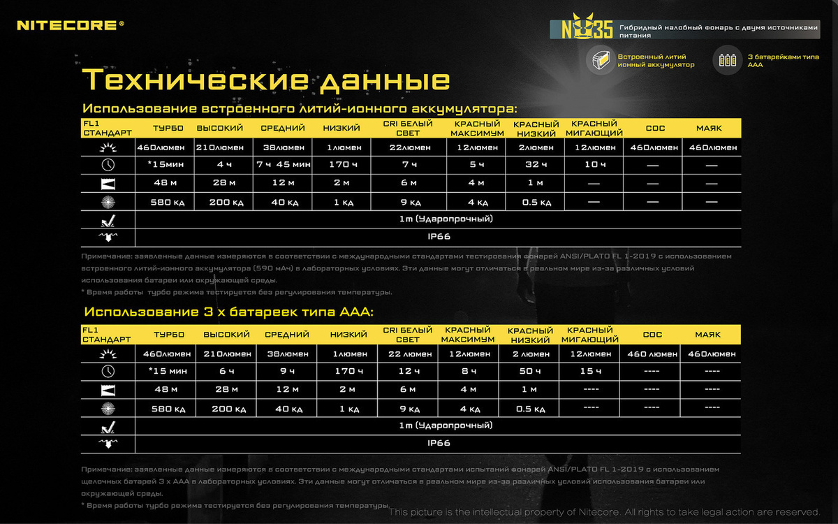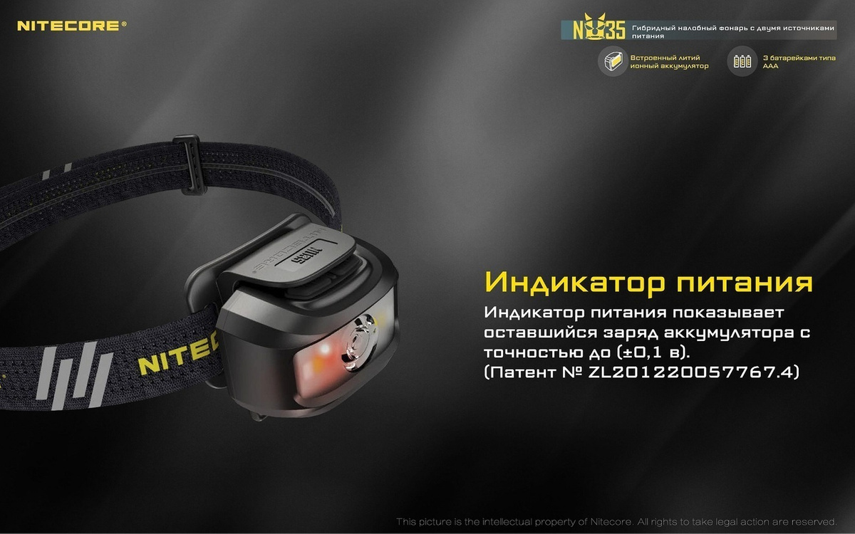 Налобный светодиодный фонарь Nitecore NU35 с встроенным аккумулятором и возможностью работы от батареек