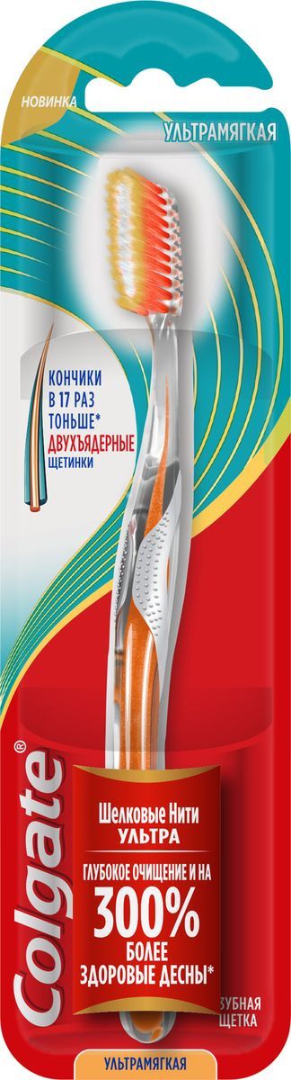 Зубная щетка Colgate Ультра Шелковые нити, ультрамягкая, оранжевый