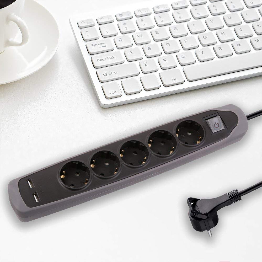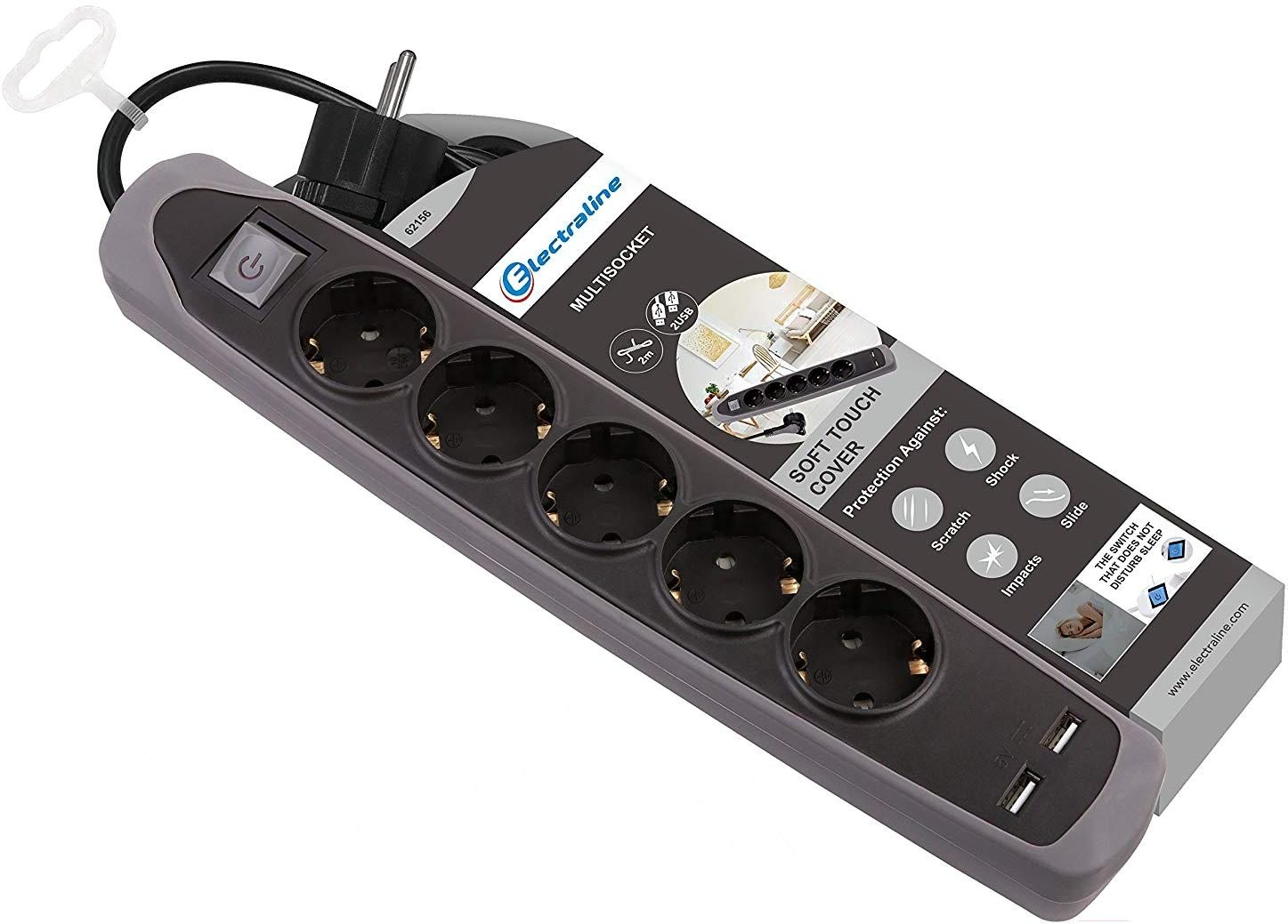 Удлинитель Electraline 62156 (2м, черный/серый)