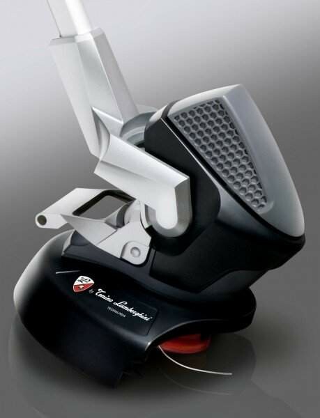 Аккумуляторный триммер Ламборджини оснащен головкой, в которой установлена шпуля с крепкой нейлоновой леской. Диаметр кошения леской небольшой, 22 см, что позволяет проходить в узких местах. Отличительная особенность состоит в том, что рабочий наклон головки триммера выполняется в трех доступных позициях. Данная функция позволяет легко срезать растительность в труднодоступных рабочих зонах, выполнять тримминг под скамейками, поду кустами и низко опущенными кронами деревьев.