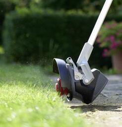 Чтобы управлять аккумуляторным триммером, не нужно никаких дополнительных навыков, а высокая производительность и надежность гарантирована. Агрегат оснащен телескопической раздвижной штангой, поворотной рукояткой. Кроме этого есть специальная боковая ручка, которая гарантирует максимально удобное управление инструментом, а также комфорт и безопасность во время использования аккумуляторного триммера.