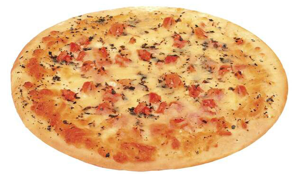 - Ингредиенты мука пшеничная хлебопекарная высшего сорта, вода питьевая, сыр (молоко пастеризованное, соль, закваска мезофильных молочнокислых микроорганизмов, молокосвертывающий ферментный препарат животного происхождения, краситель Е160b), сыр «Моцарелла» (пастеризованное молоко, молочный белок, ферментный препарат животного происхождения, бактериальная закваска термофильных молочнокислых микроорганизмов, соль (соль, агент антислеживающий Е536), уплотнитель - хлорид кальция, регулятор кислотности - кислота лимонная, консервант – сорбат калия), соус майонезный с чесноком (вода, масло подсолнечное рафинированное дезодорированное, загуститель – крахмал модифицированный, соль, желток яичный ферментированный, чеснок молотый, регулятор кислотности – кислота лимонная, стабилизаторы – камедь ксантановая и камедь гуаровая, консервант – сорбат калия, сахар, краситель – бета-каротин), томаты, дрожжи хлебопекарные, сахар, масло подсолнечное, соль (соль, агент антислеживающий Е536), меланж яичный сухой, разрыхлитель –гидрокарбонат натрия, добавка комплексная пищевая (глютен пшеничный, мука пшеничная, эмульгаторы – стеароил-2-лактилат кальция и моно- и диглицериды жирных кислот, солод пшеничный молотый, глюкоза, загуститель – камедь гуаровая, регулятор кислотности - диацетат натрия, ферменты микробного происхождения, антиокислитель Е300), базилик сушеный.