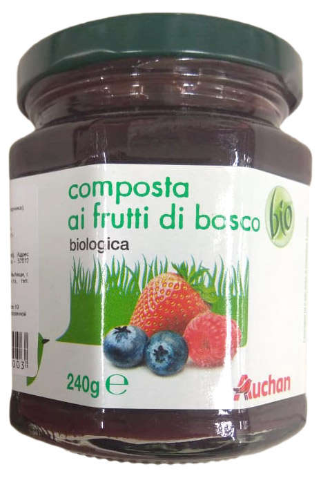 - Ингредиенты Ягоды (клубника 65%, малина, ежевика, смородина, черника); сахар, пектин из яблок, лимонный сок.