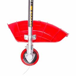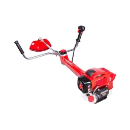 Комплектация расширена. Есть три режущих элемента на выбор: триммерная полуавтоматическая головка с прочной леской, трехлопастный нож и пилящий диск. В комплект также входит удобный ранцевый ремень, который позволит перенести нагрузку с рук на плечи и спину.