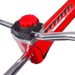Ручки управления изготовлены в форме велосипедного руля, что обеспечивает самый лучший контроль над инструментом при работе. Рукоятки крепятся и регулируются по высоте без использования гаечного ключа или других инструментов. Крепление простое, доступное начинающему пользователю.