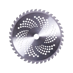 Бензиновая коса обладает возможность смены режущей оснастки. Для скашивания мягкой свежей травы и работы между деревьями или у стены лучше всего подойдет леска. А для среза жестких сорняков и сухой старой травы рекомендуется установить нож. Нож прочный, изготовлен из стали, имеет три острых лопасти. Высокая мощность двигателя позволяет использовать и режущий диск с 40 зубьями. Он применяется для спиливания молодых деревьев и одеревеневших кустарников.