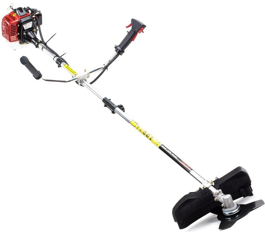 в качестве режущей системы используется леска и нож (применяются в зависимости от скашиваемой растительности);
