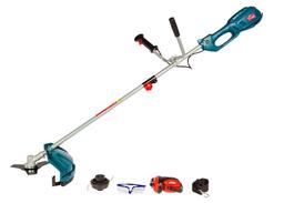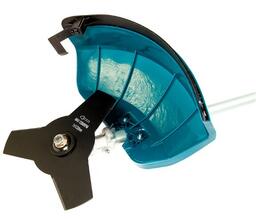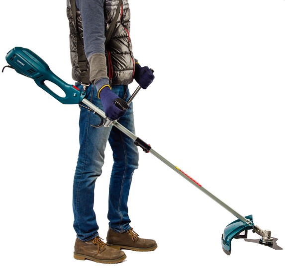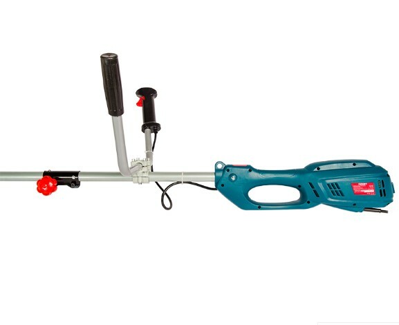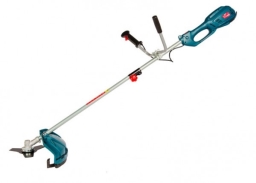 Представленный триммер характеризуется мощным, выносливым двигателем (1800 Вт). Оснащен системой плавного пуска. В зависимости от типа и жесткости растительности, можно использовать леску или трехлопастной нож. В стандартную комплектацию включен набор ключей и крепежных элементов.