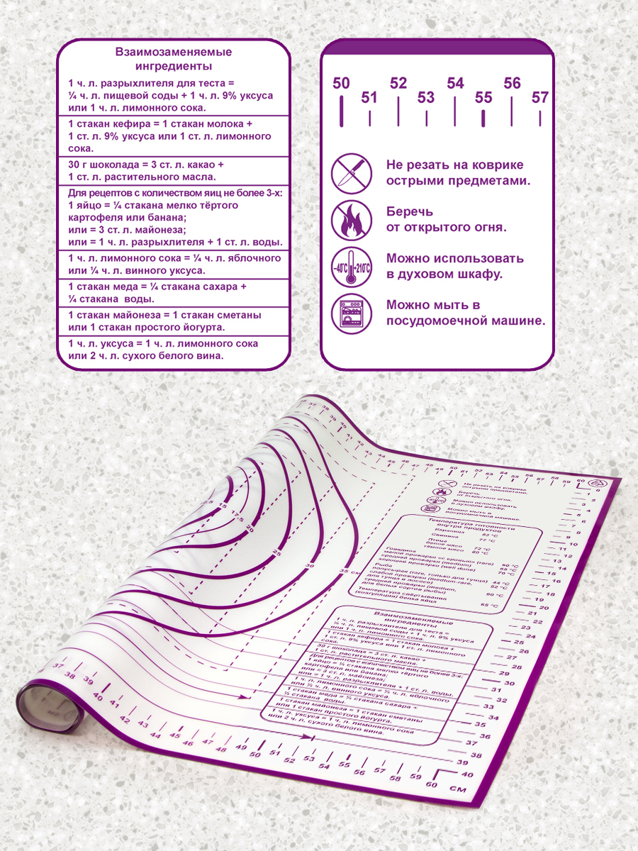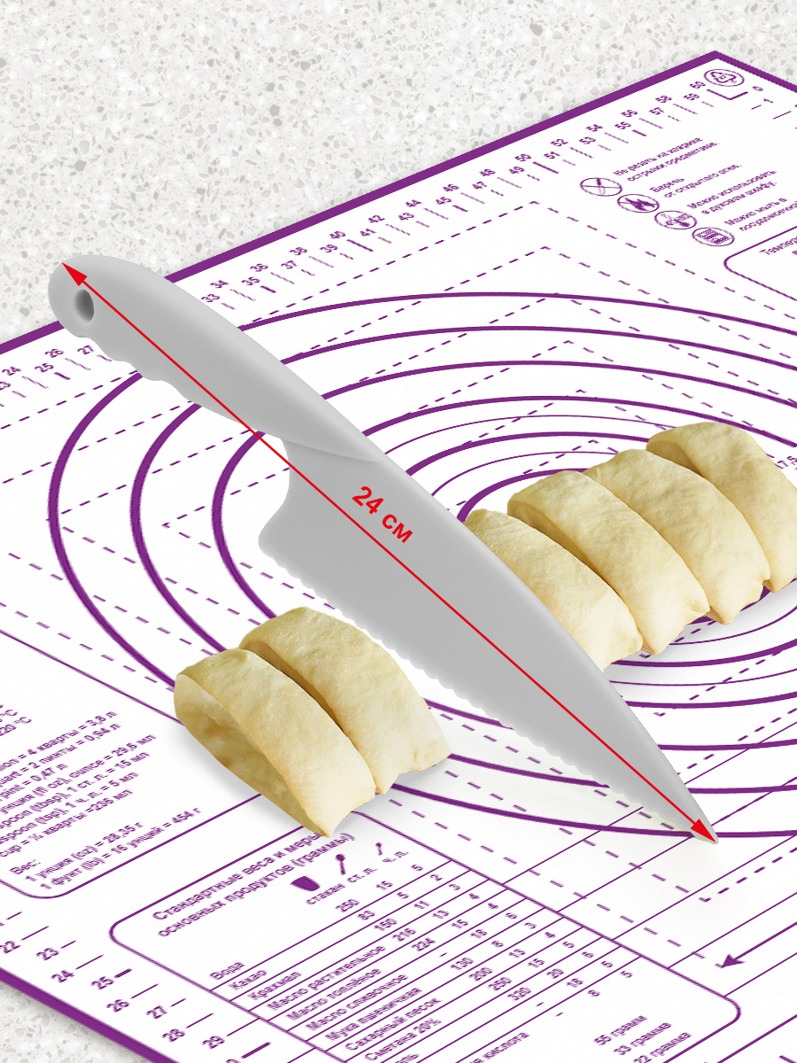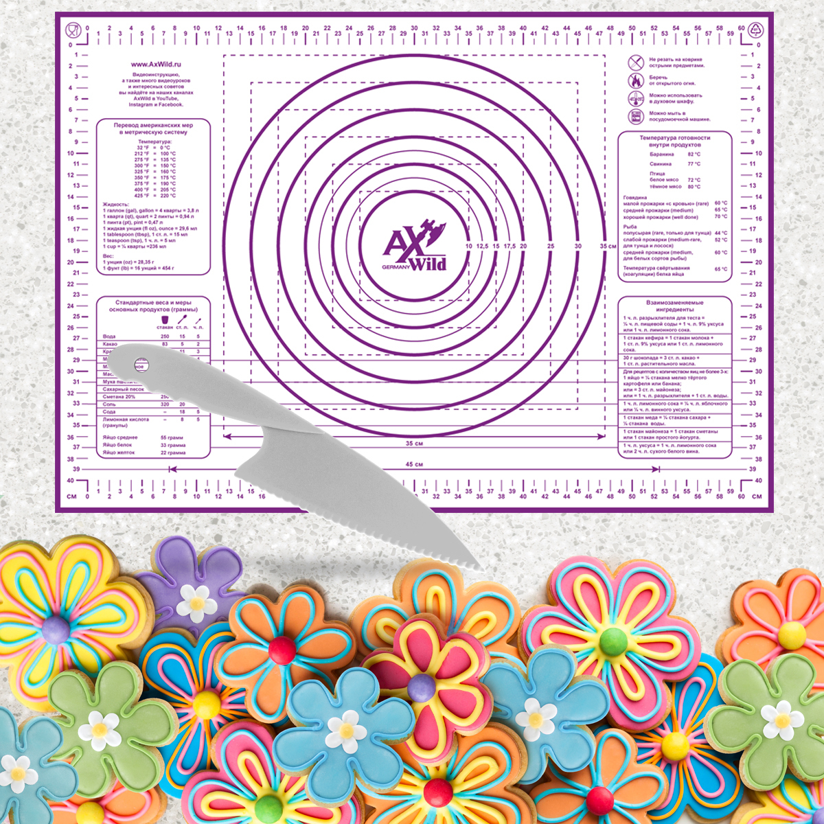 Рецептурный силиконовый кулинарный коврик 46х66 для теста, с идеальным прилеганием в комплекте с ножом (Германия)