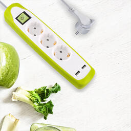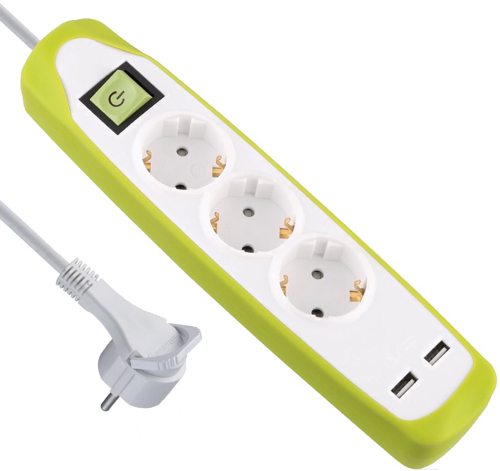 Удлинитель Electraline 62155 (2м, белый/зеленый)