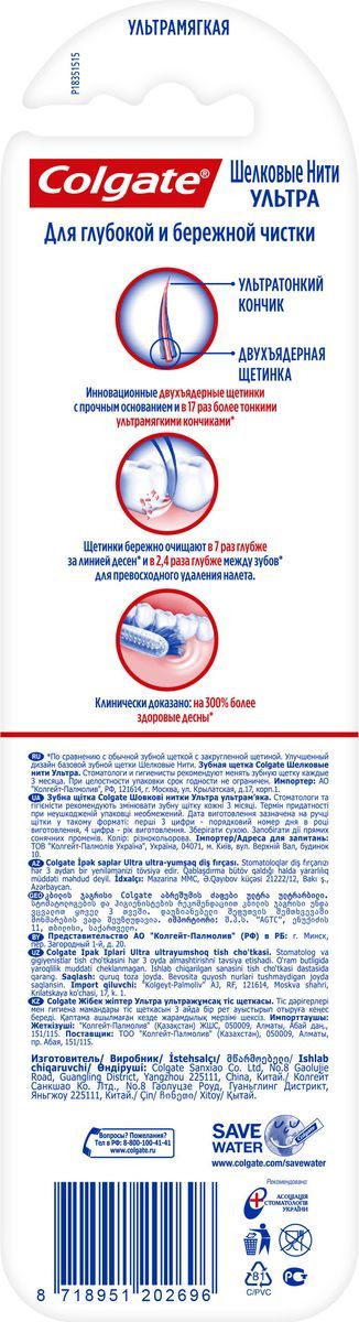 Зубная щетка Colgate Ультра Шелковые нити, ультрамягкая, синий