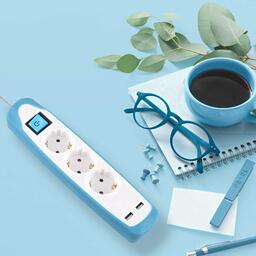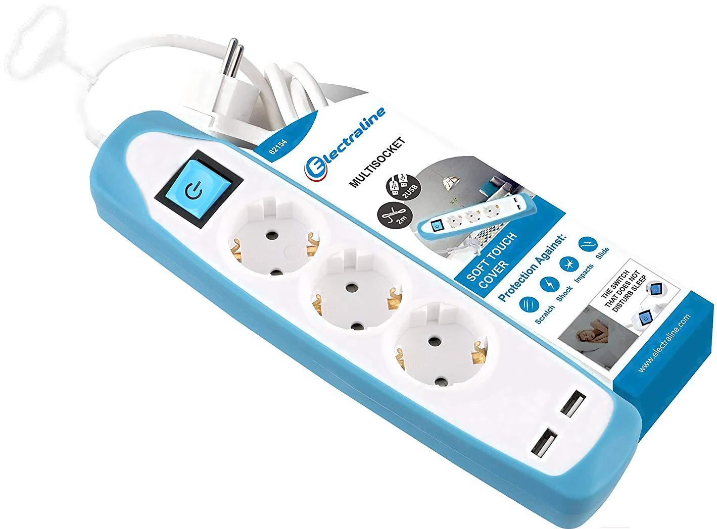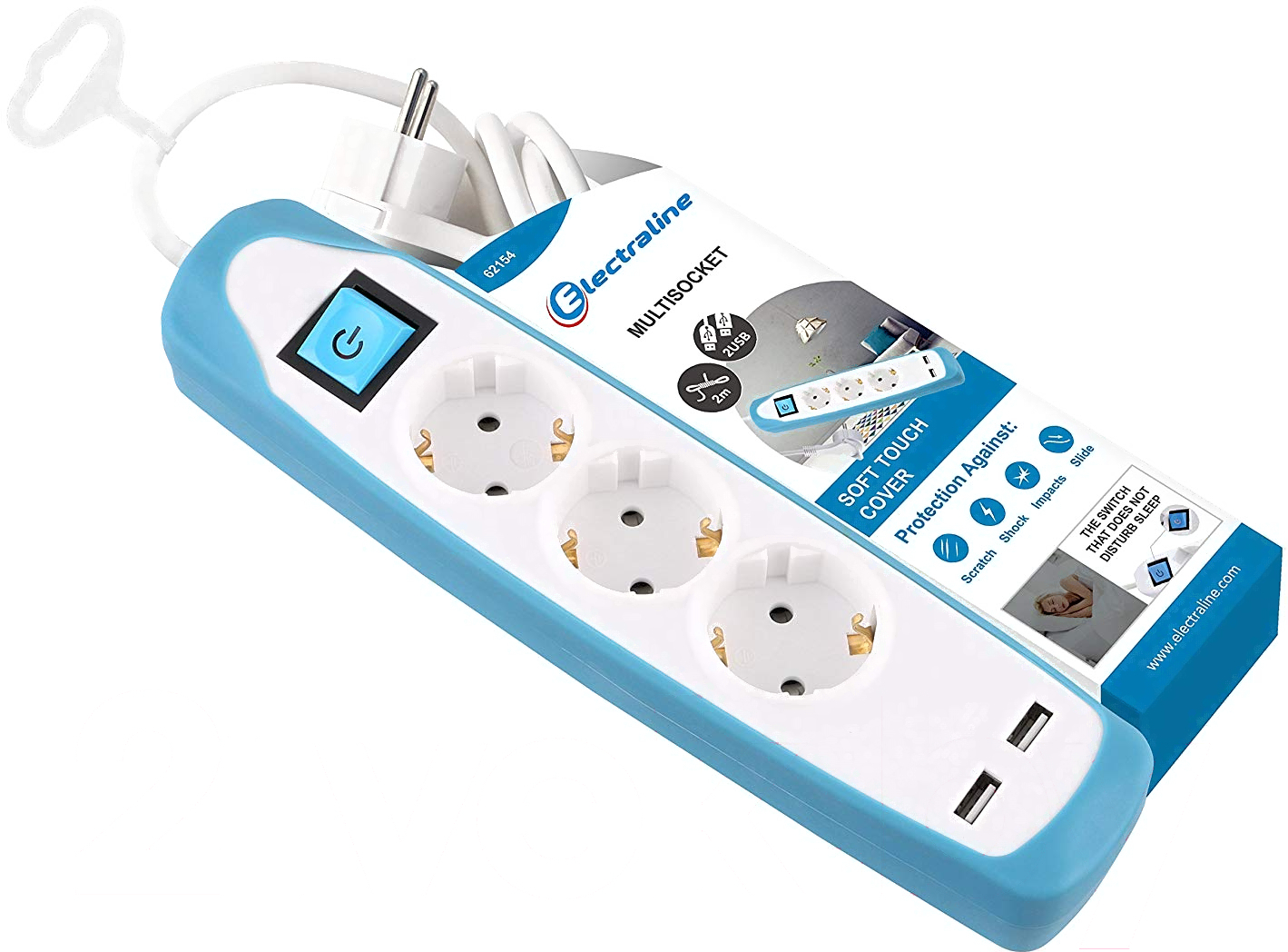 Удлинитель Electraline 62154 (2м, белый/голубой)