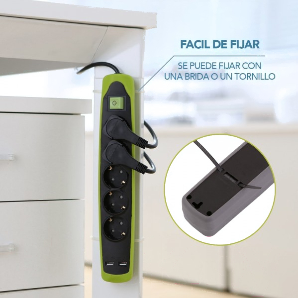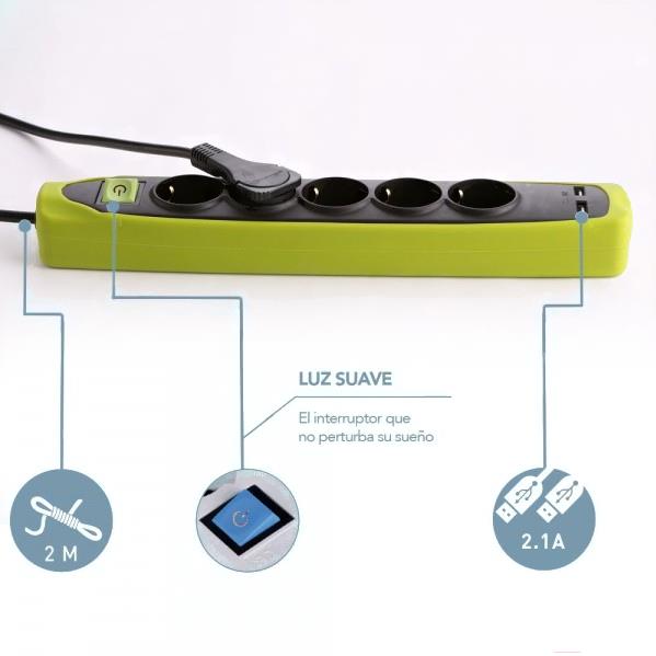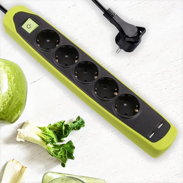 Удлинитель Electraline 62158 (2м, черный/зеленый)