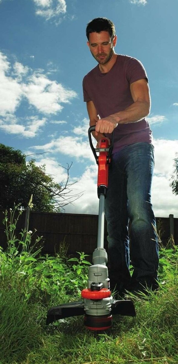 Простое переключение режимов кошение и выравнивание путем смещения специального упора электрокосы;