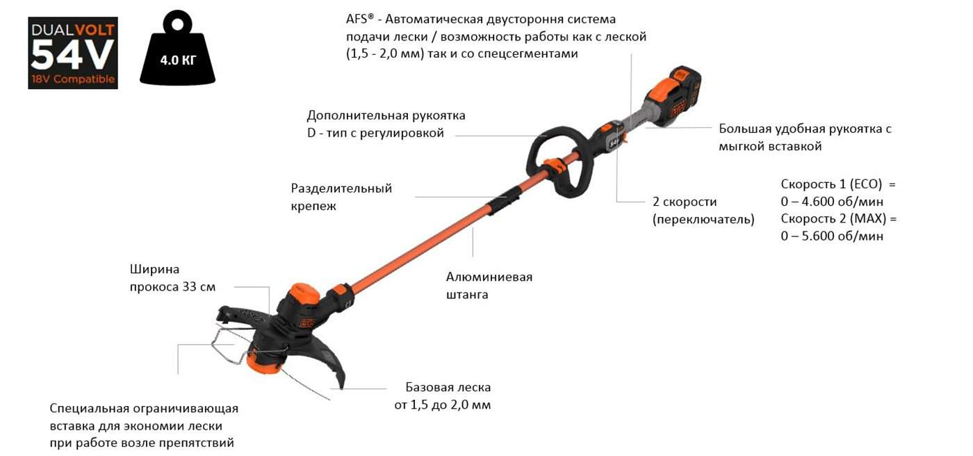 Недавно американская компания-производитель садовой техники Black&Decker, с производственными мощностями в Англии, представила потребителям триммер модели STC 5433, который был высоко оценен за свои показатели работы. Аккумуляторная коса обеспечивает обширные возможности своего применения вдали от благ цивилизации и вне доступа к электросети.