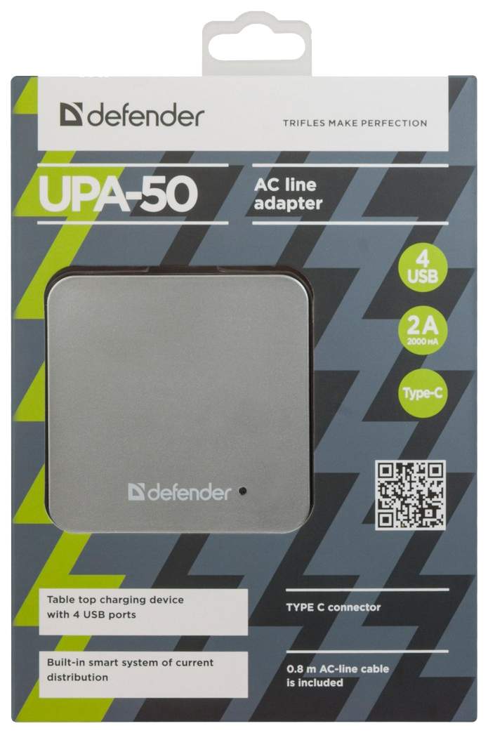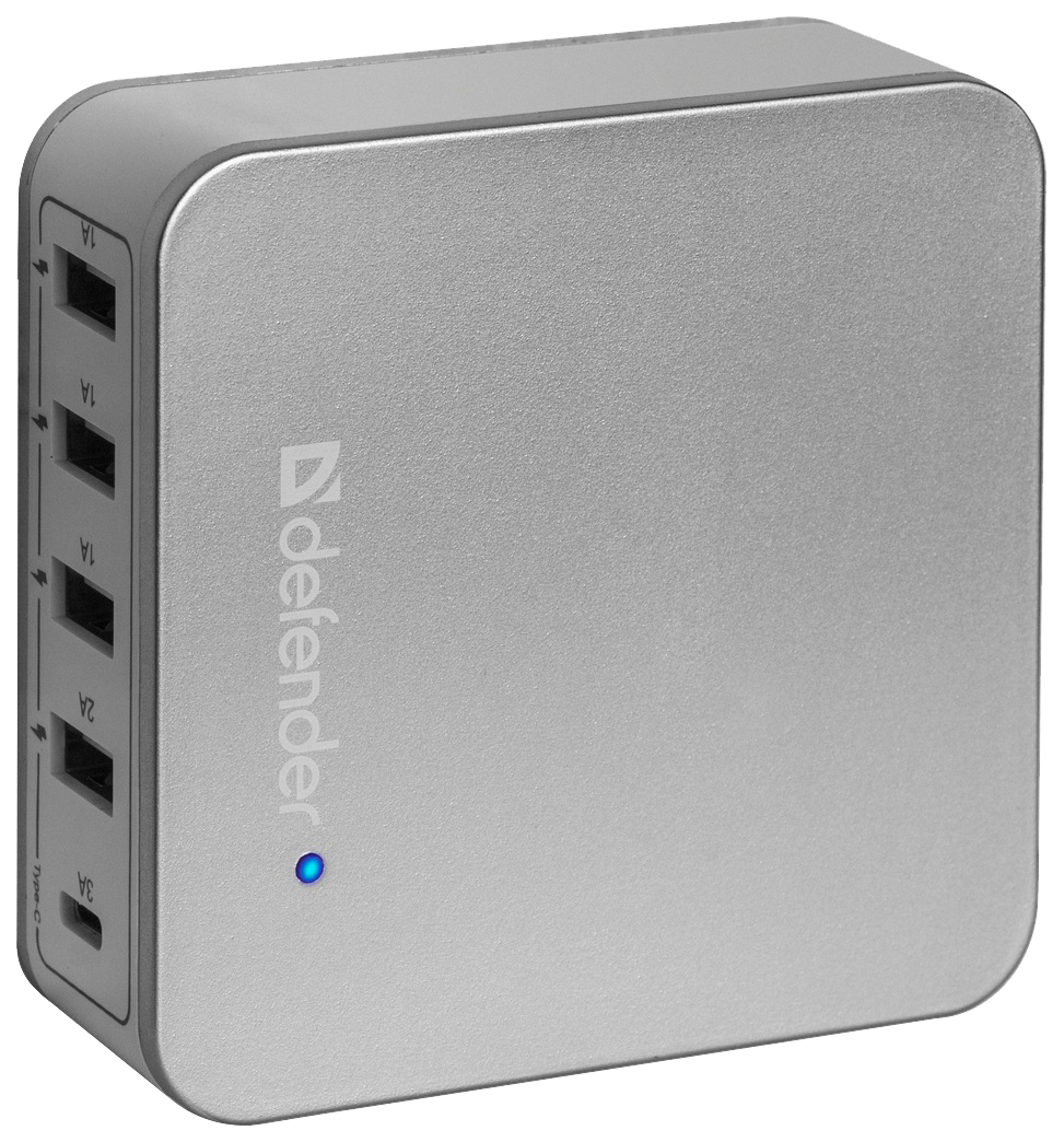 Сетевое зарядное устройство Defender UPA-50 4 USB/USB Type-C 8A Silver