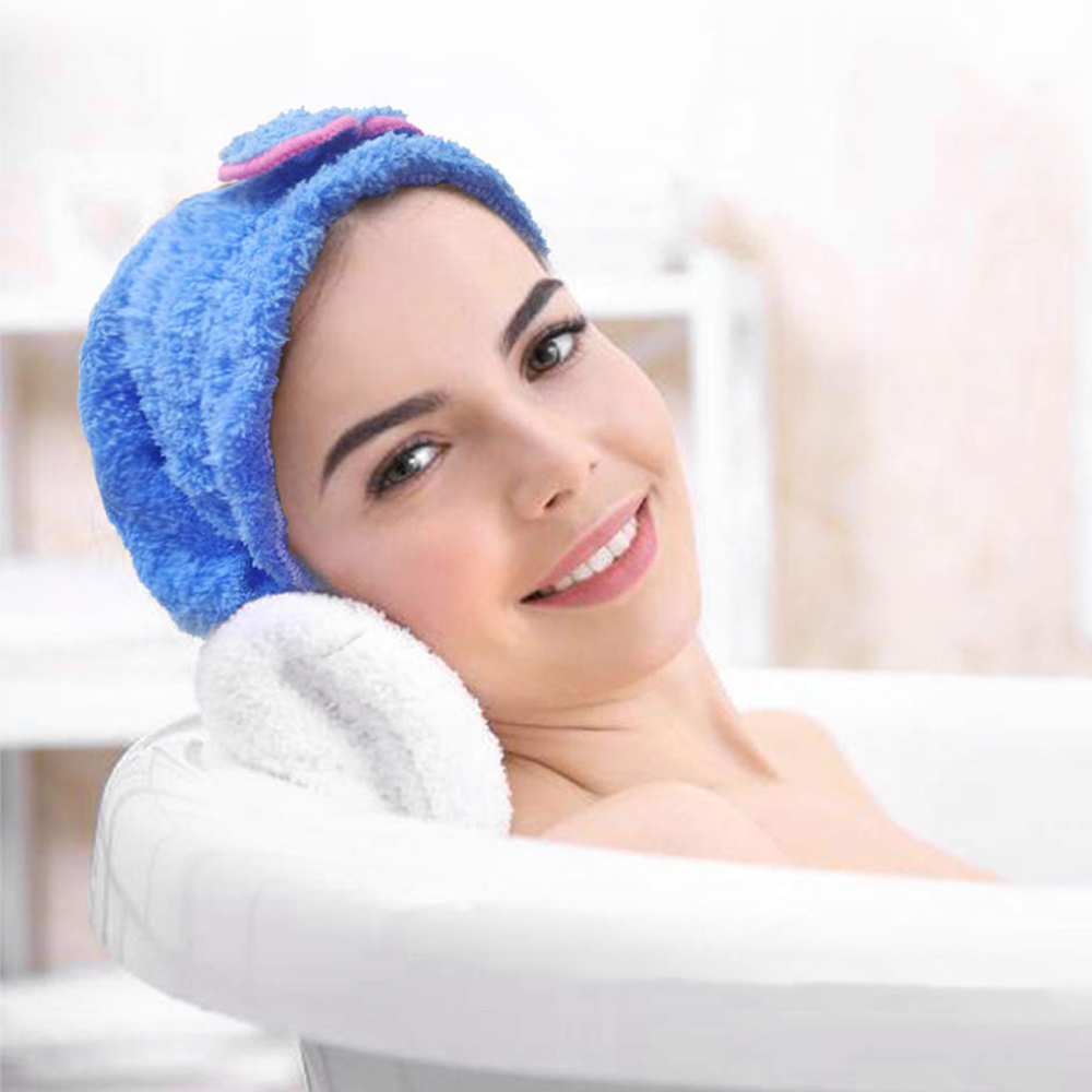 Шапочка для сушки волос из флиса с бабочкой, цвет синий