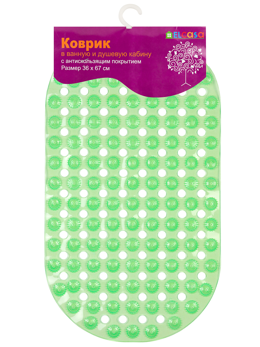 Коврик антискользящий в ванную и душевую кабину с массажным эффектом 67х36х0,5 см EL Casa Салатовый