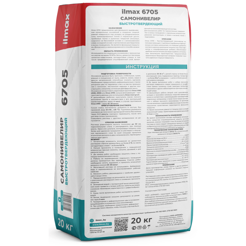 Смесь самонивелирующая гипсовая ilmax 6705, 20 кг