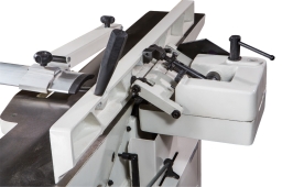 Представленный фуговальный станок является новой модификацией деревообрабатывающего оборудования для профессионального применения. Агрегат предназначен для придания гладкости деревянным поверхностям. Фуганок с упором необходим при производстве мебели, столярных изделий, в промышленных мастерских.