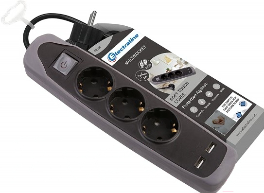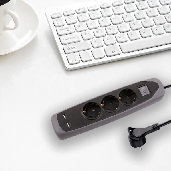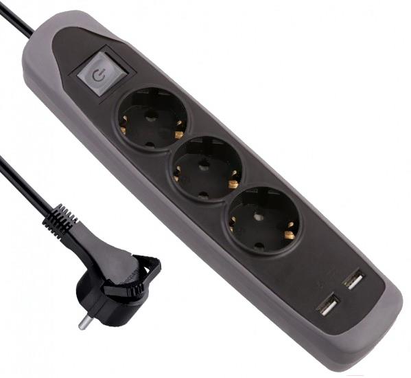 Удлинитель Electraline 62150 (2м, черный/серый)