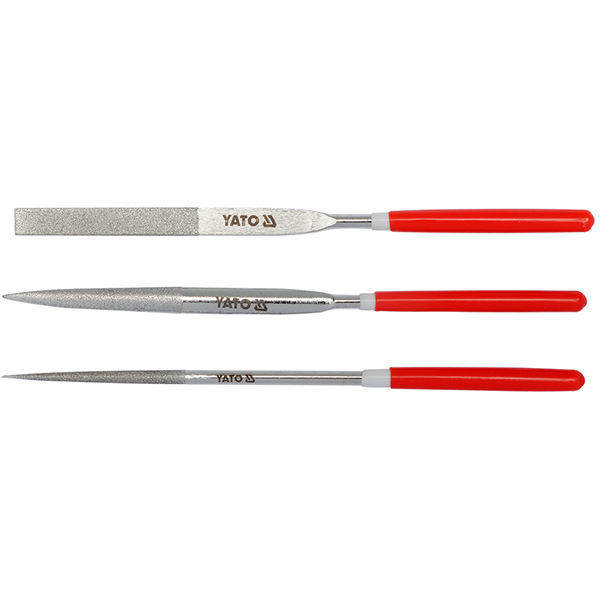 Набор надфилей алмазных Yato YT-6150 предназначен для тонких и ювелирных работ. Благодаря алмазному покрытию скоблит поверхность изделия, снимая его тонкий верхний слой. Миниатюрная форма надфиля позволяет работать со сложно доступными местами, обрабатывать пазы и предоставлять углам поверхности изделия нужную форму и вид. В набор входит три надфиля: плоский, полукруглый и круглый.