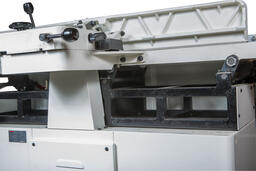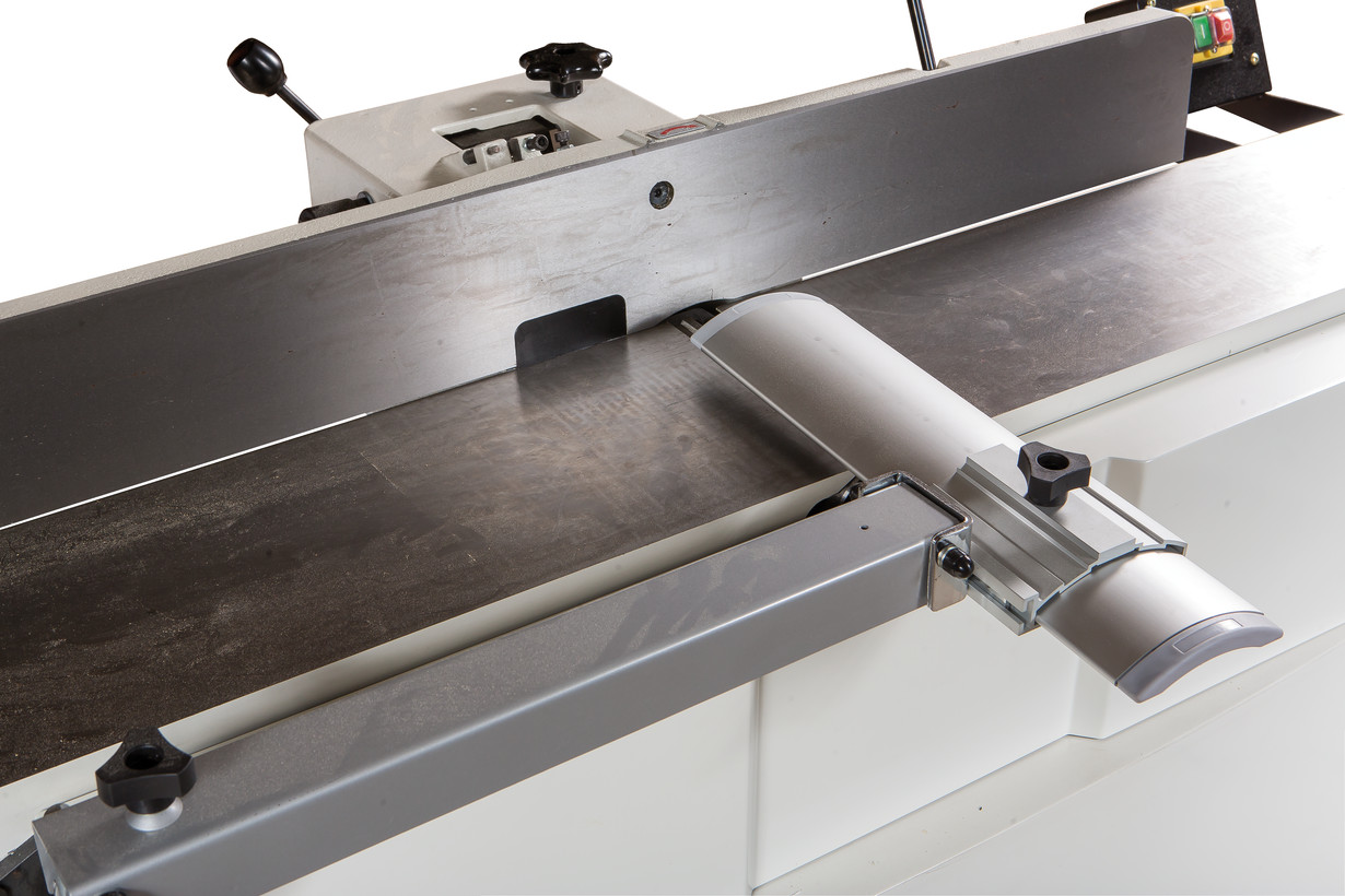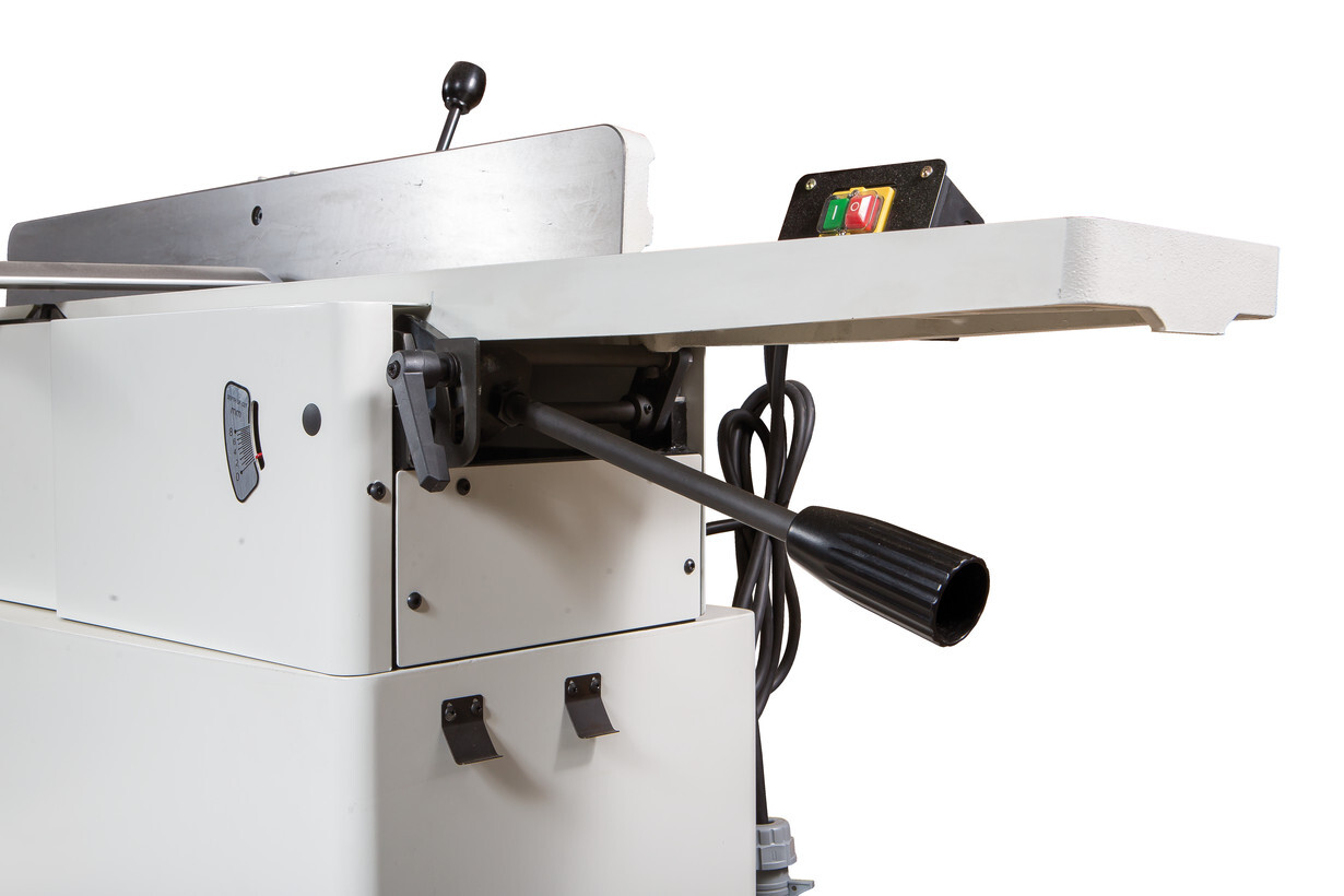 Представленный фуговальный станок оснащен ножевым валом и предназначен для интенсивной эксплуатации, а также работы с твердыми породами дерева, брусков с многочисленными сучками.