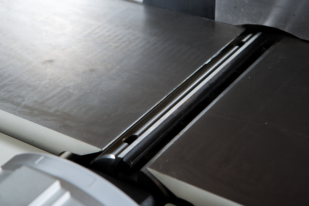 полированные чугунные столы обеспечивают хорошее скольжение материала и уменьшают уровень вибрации;