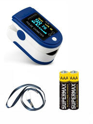 Пульсоксиметр с цветным OLED дисплеем на палец, батарейки в комплекте