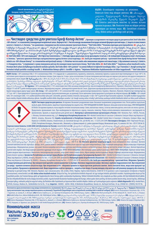 Туалетный блок подвесной «Бреф» Color Aktiv Цветочная Свежесть, 3x50 г