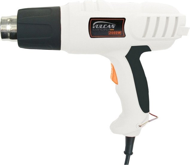 Промышленный фен мощностью 2000 Вт. Диапазон температур 400-600 °С. Поток воздуха 350-500 л/мин. Вес: 1 кг.