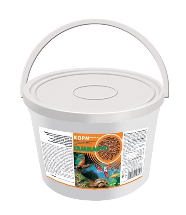 Гаммарус - пресноводные рачки, обитающие в крупных озерах Сибири. Корм отличается высоким содержанием веществ, укрепляющих здоровье рыб и повышающих интенсивность их естественной окраски.