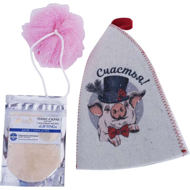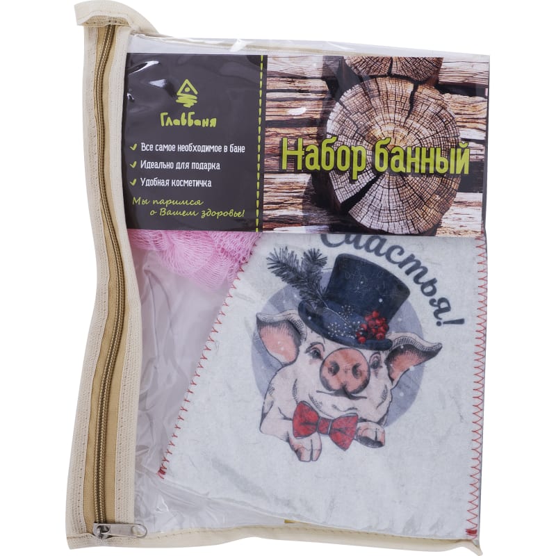 Набор для бани «Счастья!»21х30х21 см, цвет белый/розовый
