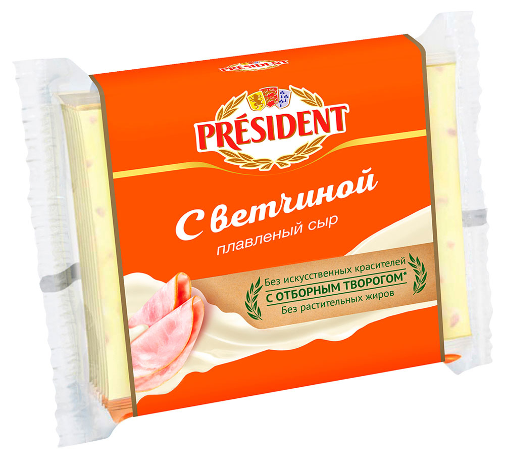 - Ингредиенты Сыр, вода питьевая, масло сливочное, сухое обезжиренное молоко, творог, казеин, ветчина (говядина, вода, крахмал картофельный, нитритная соль (соль, фиксатор окраски Е250, агент антислеживающий Е535), соевый белок, ферментированный рис, экстракт дрожжей, ароматизатор, чеснок, белый перец, кориандр, антиокислитель Е316), эмульгаторы Е452 и Е450, загустители – Е1442 и Е407, соль, регулятор кислотности лимонная кислота, комплексная пищевая добавка (ароматизатор, усилители вкуса и аромата Е621 и Е635, регулятор кислотности Е327, агент антислеживающий Е551), консервант сорбат калия, пищевая добавка (подсолнечное масло, краситель каротины, антиокислитель альфа-токоферол).