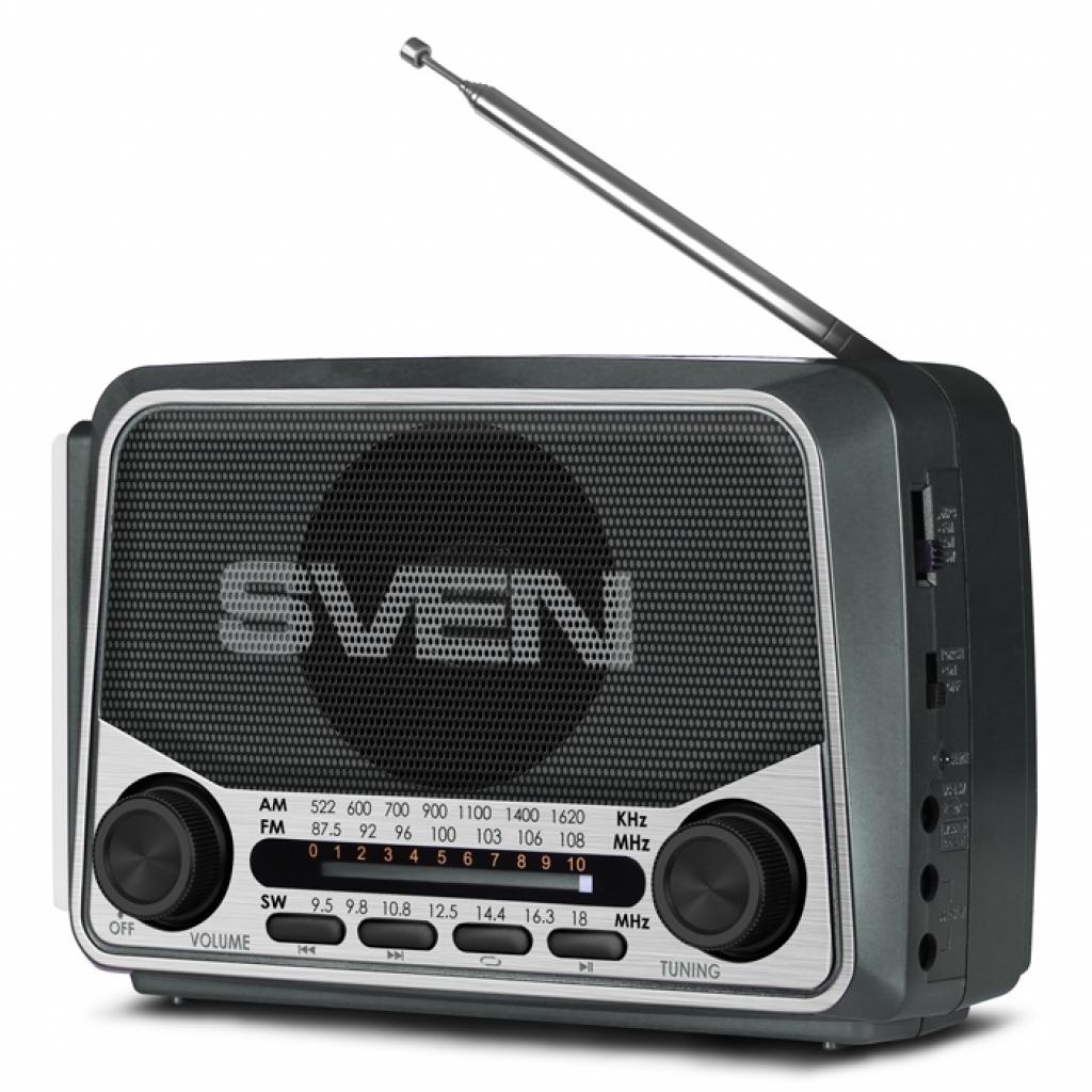 Купити портативний радіоприймач SVEN ви можете в будь-якому великому магазині вашого міста. Особливості: вбудоване FM / AM / SW радіо. Відтворення музики з USB flash і microSD карт пам'яті. Телескопічна поворотна антена. Вбудована батарея.
