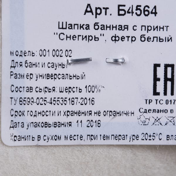 Шапка банная «Снегирь», фетр, цвет белый