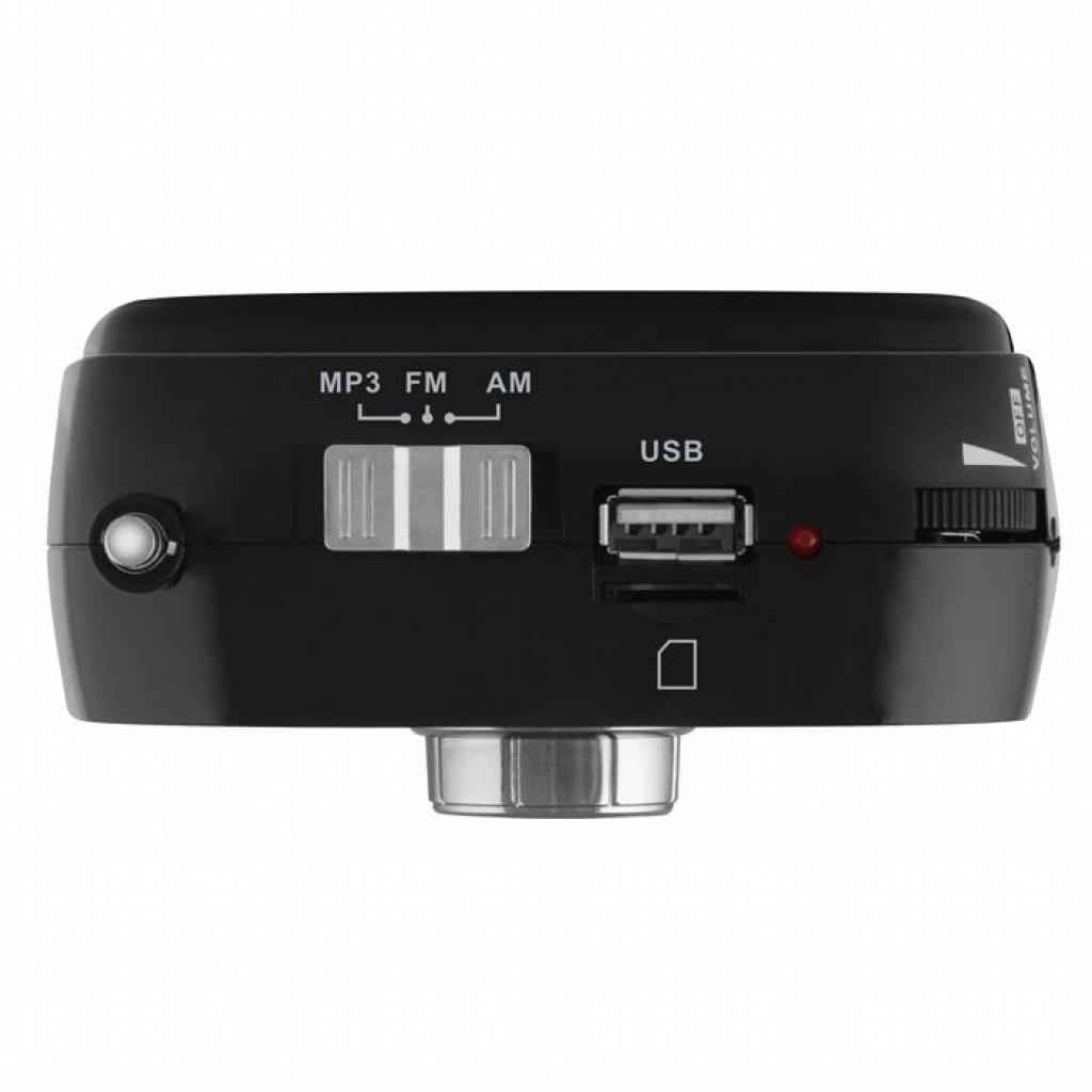 Особливості: глибокий бас завдяки пасивному випромінювача. Вбудоване FM / AM радіо. Відтворення музики з USB flash і microSD card пам'яті. Телескопічна поворотна антена. Вбудована батарея. Вихід на навушники.