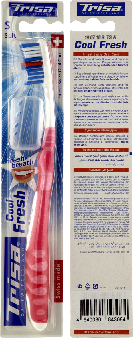 Зубная щетка Trisa Кул & Фреш (Cool & Fresh) мягкая, цвет красный