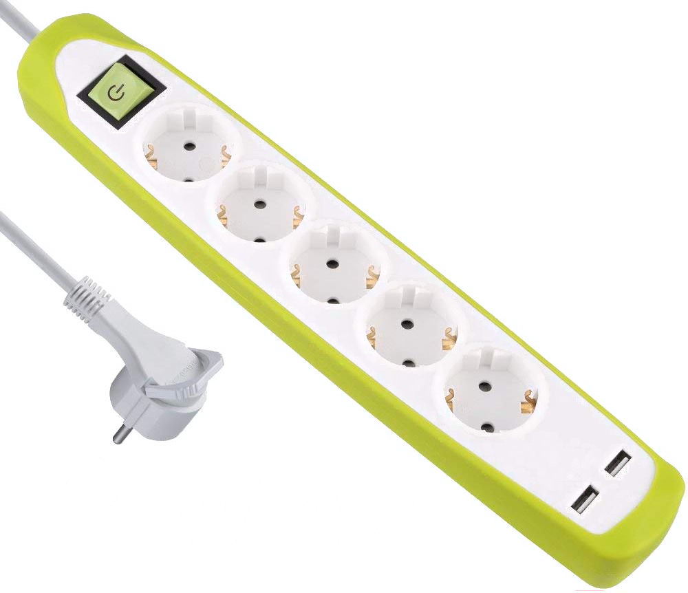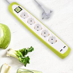 Удлинитель Electraline 62161 (2м, белый/зеленый)